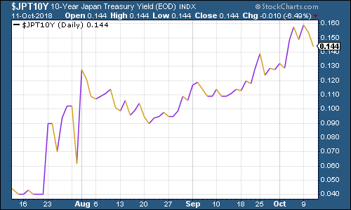 The Japanese government bond (JGB) yield slipped back but is still higher than we've seen it in a very long time.