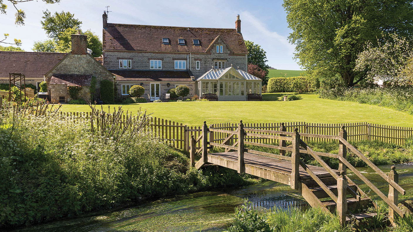 Water Cottage, Little Ann, Andover, Hampshire. A Grade II-listed house with 225 metres of river frontage with single-bank fishing rights on Pill Hill Brook, a chalk stream perfect for trout fishing. The cottage has exposed beams, open fireplaces and a timber-framed garden room overlooking the river. 6 beds, 3 baths, 3 receps, study, guest annexe, heated pool, tennis court, gardens, meadows, 5 acres. £1.65m Savills 01962-841842.