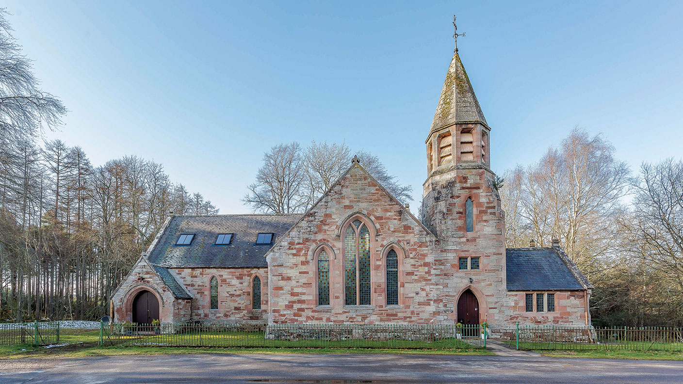 Allan Church, Bogallan, North Kessock, Inverness. A C-listed converted church dating from 1888 close to a village at the head of Munlochy Bay on the Black Isle. It retains its double-height wooden vaulted ceiling and stained-glass windows. 5 beds, 4 baths, open-plan living area, garden. £550,000+ Strutt & Parker 01463-723596.