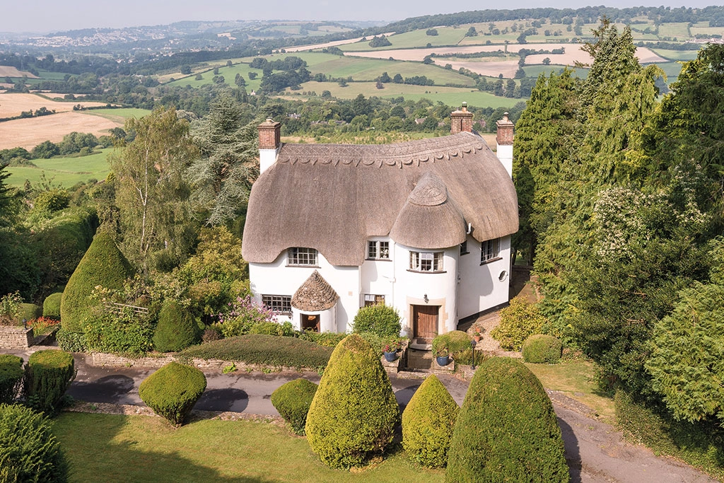 This Grade II-listed house was built in 1936 and combines Arts & Crafts and Gothic-Revival styles to create a distinctive property with a stairway in a round tower with a curved oak door. It has leaded light windows, oak- panelling, stone fireplaces and large gardens. 5 bedrooms, 3 bathrooms, 3 reception rooms, breakfast kitchen, 2-bedroom annexe, courtyard, 1.6 acres.