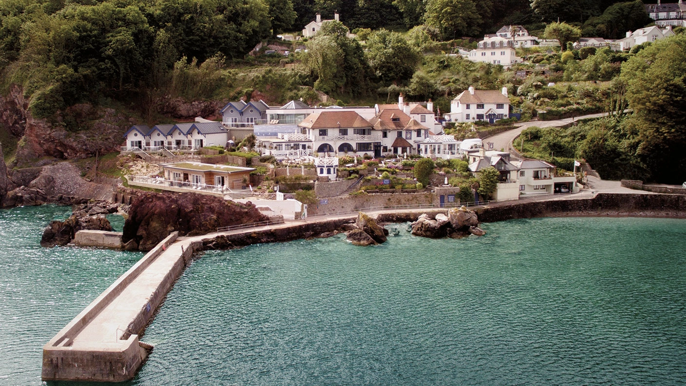 More characterful rooms, suites and sea views are to be found in the main building. Taken together, the whole lot seemingly tumbles down the rock face. Looking back from Babbacombe beach, located a short sailor’s jig away, the hotel is as pretty a sight as any in south Devon – and that’s saying something considering the breadth of breath-taking cliff walks nearby, not to mention wind-swept Dartmoor, which lies only a 40-minute drive away.