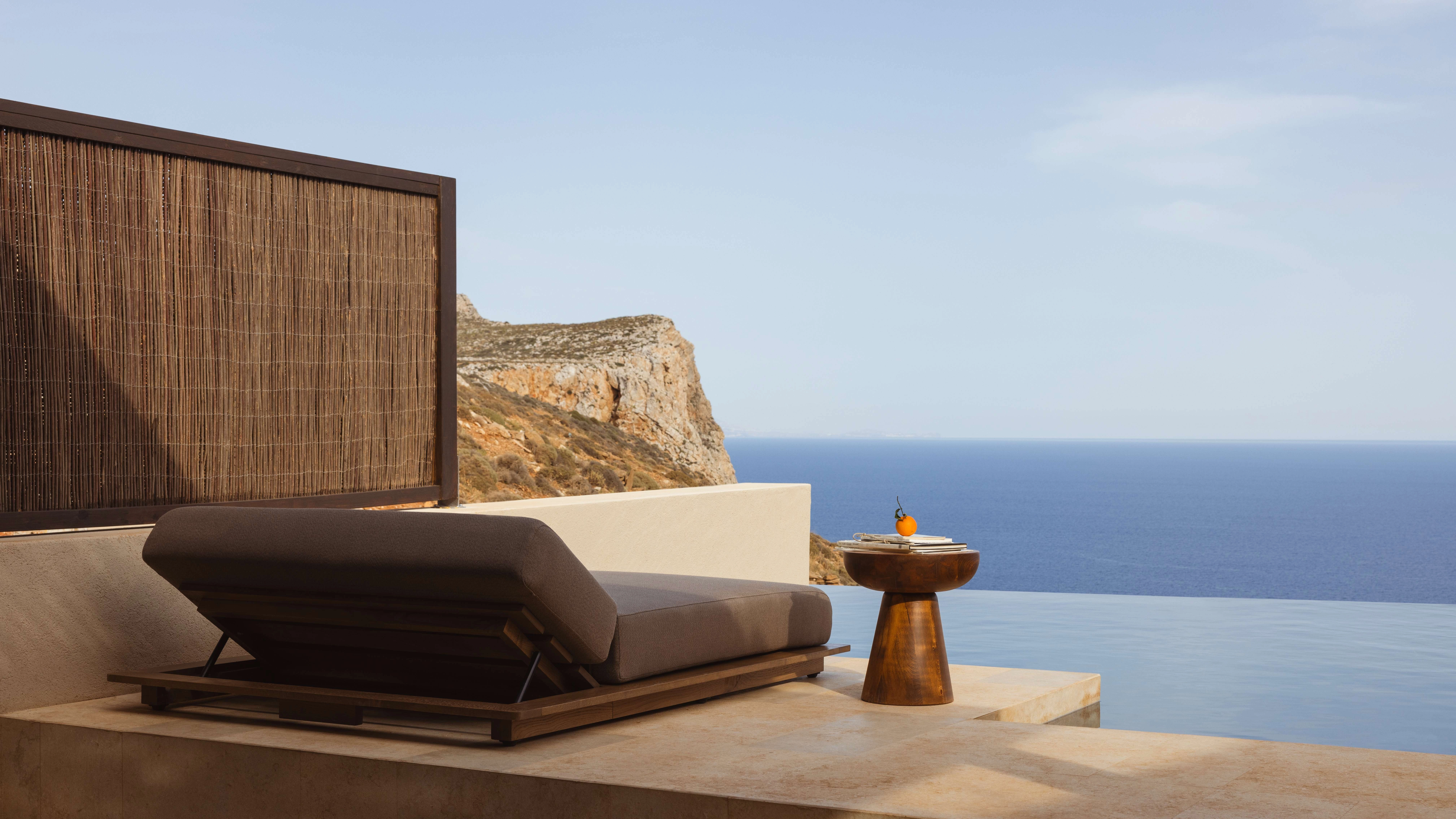 After a long day of travelling, I collapsed onto the bed in my suite late at night, excited to wake up and admire the view in the light of day. Early the next morning, I stepped out onto a private pool that seemed to melt into the Aegean.