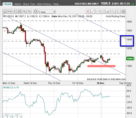 This line meets the Fibonacci 38% retrace level in the $1,640 region. That is the level I will be using as my possible target and where I will be looking to short again, if the market can make it above the 23% level.