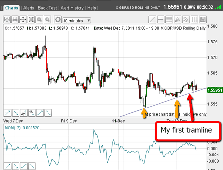 John C Burford looks at a classic tramline pattern in a pound v dollar trade.