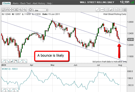 As you all know by now, the US debt ceiling crisis is over, and overnight, the Dow has rallied and gold has declined (I hope to get to gold later this week, as the chart is looking full of promise).
